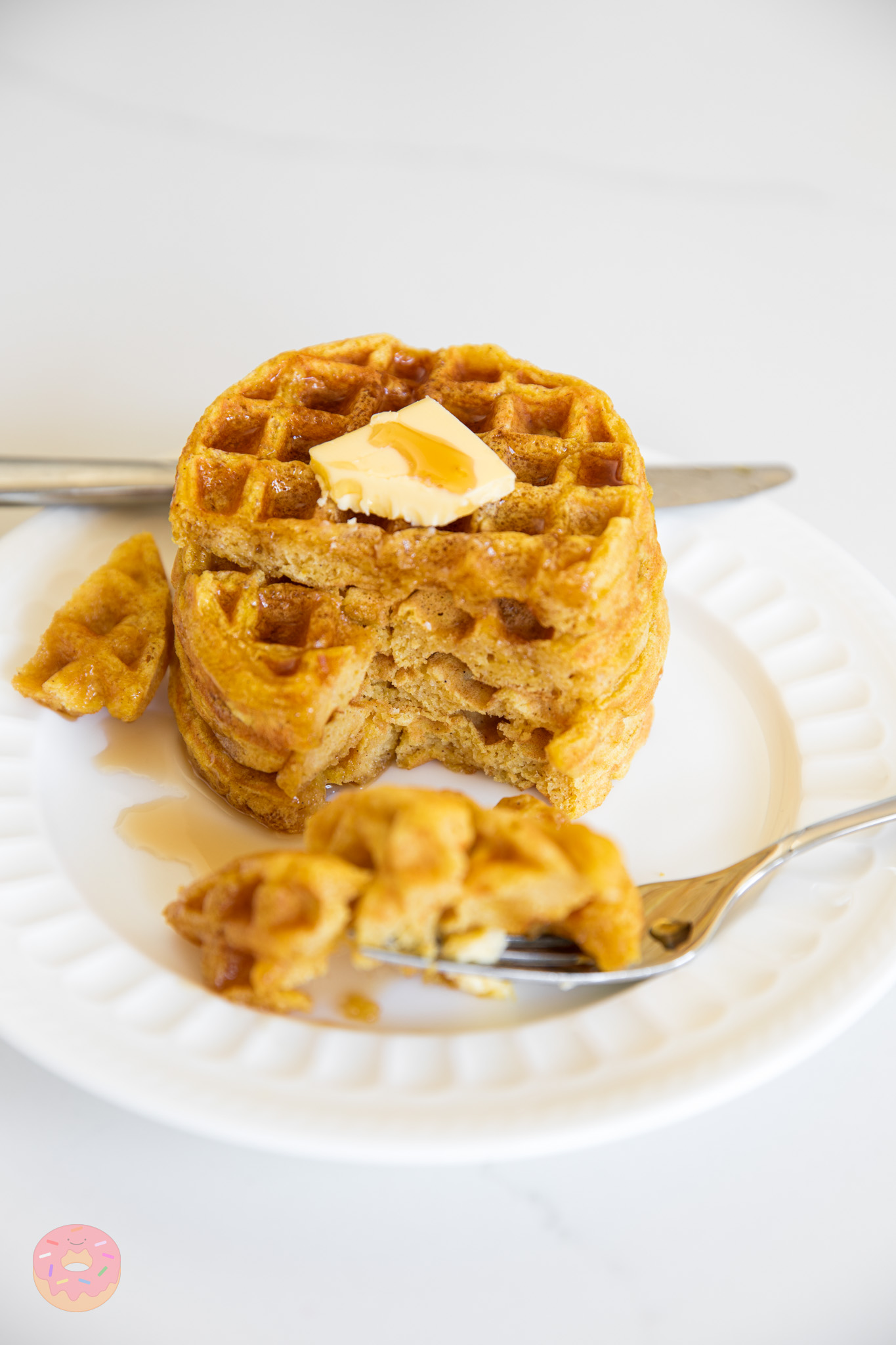 Homemade Pumpkin Waffles 🧇 make for a lovely seasonal breakfast addition everyone will love. Warm, fluffy and slightly spiced, they’re a surefire way to start off the brisk fall morning in a zippy mood. Enjoy them topped with a pat of salted butter and a drizzle of maple syrup or even plain in all their humble, yet elevated glory.