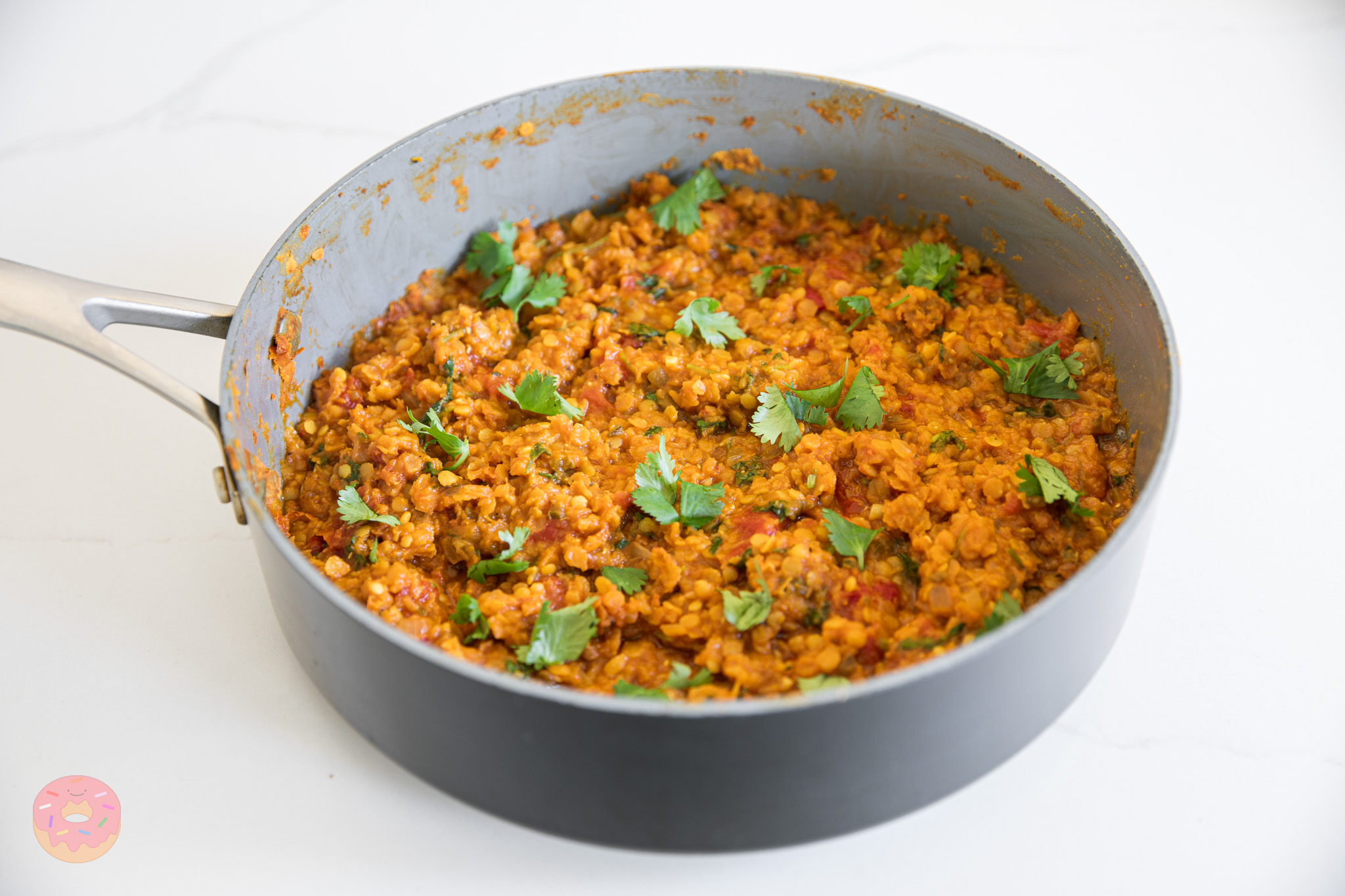 Red lentils are a pantry staple around here since they’re so nutritious, easy and quick-cooking, and lap up loads of flavor. This dish starts out with an aromatic base of onions, garlic and ginger sauteed to tenderness then infused with a blend of curry and complementary spices that creates its signature, craveable taste-profile. Caramelized tomato paste and chunky tomatoes add a hint of sweet sauciness to round out the whole meal.