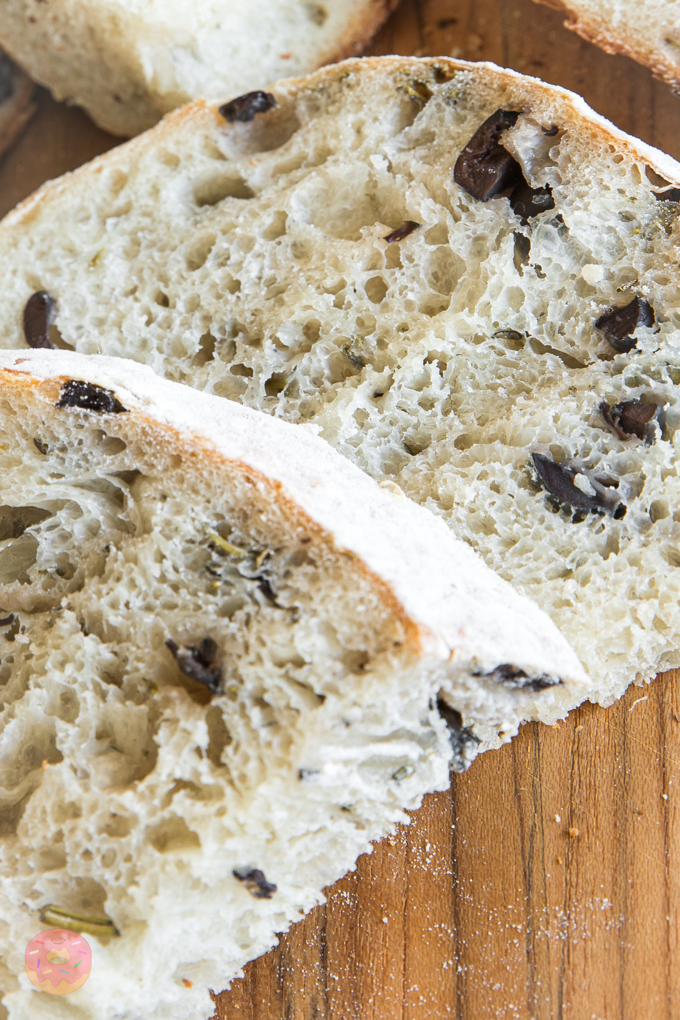 Plump, briney kalamata olives and savory rosemary are a match made in heaven for a crusty loaf of sourdough. The salty olives warmed in the tender embrace of the dough impart a lovely taste and texture to the crumb and rosemary obviously adds an unrivaled savory flavor that lights up the senses. This loaf is so good it will make your house smell like an authentic bread shop.