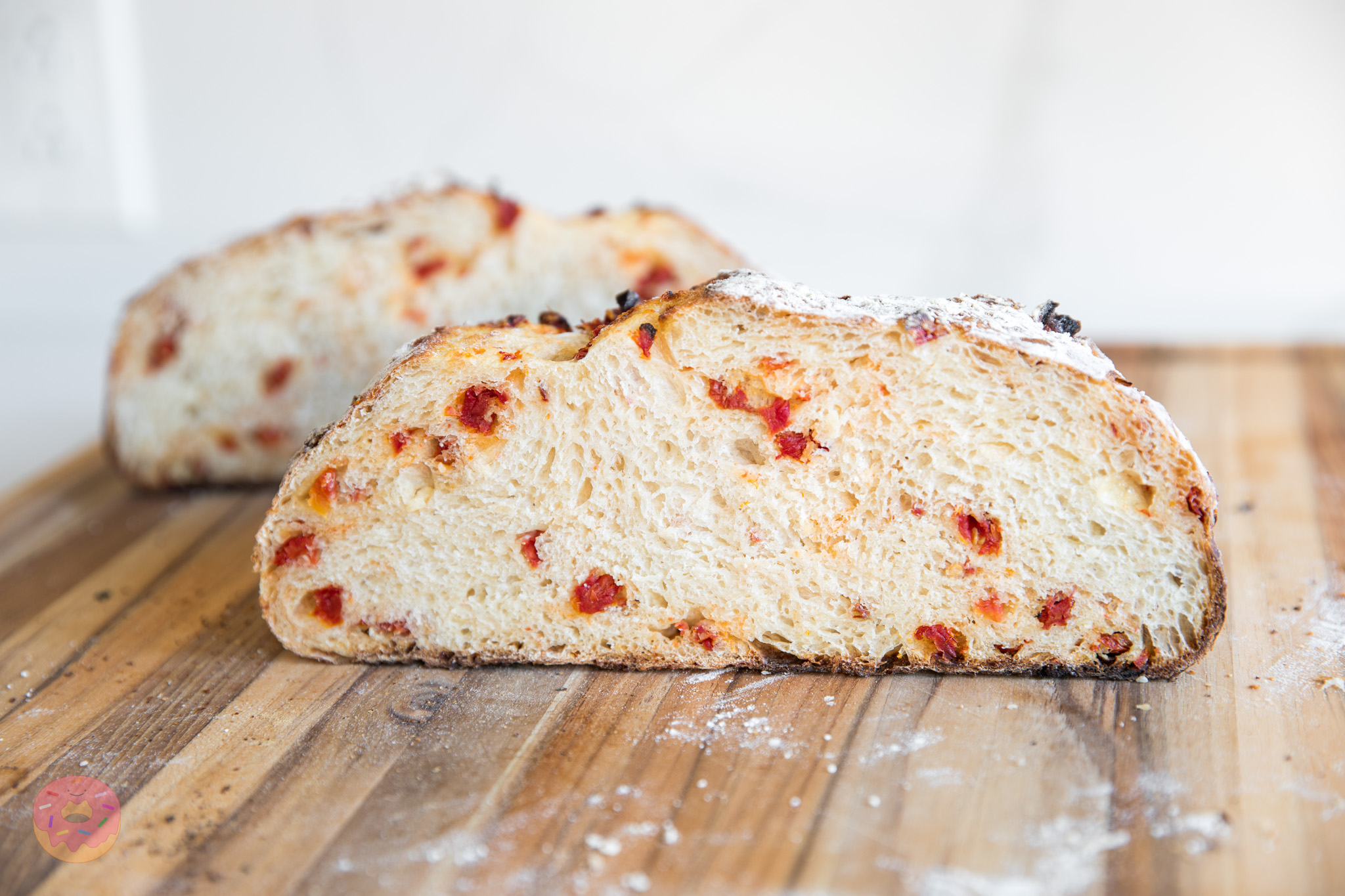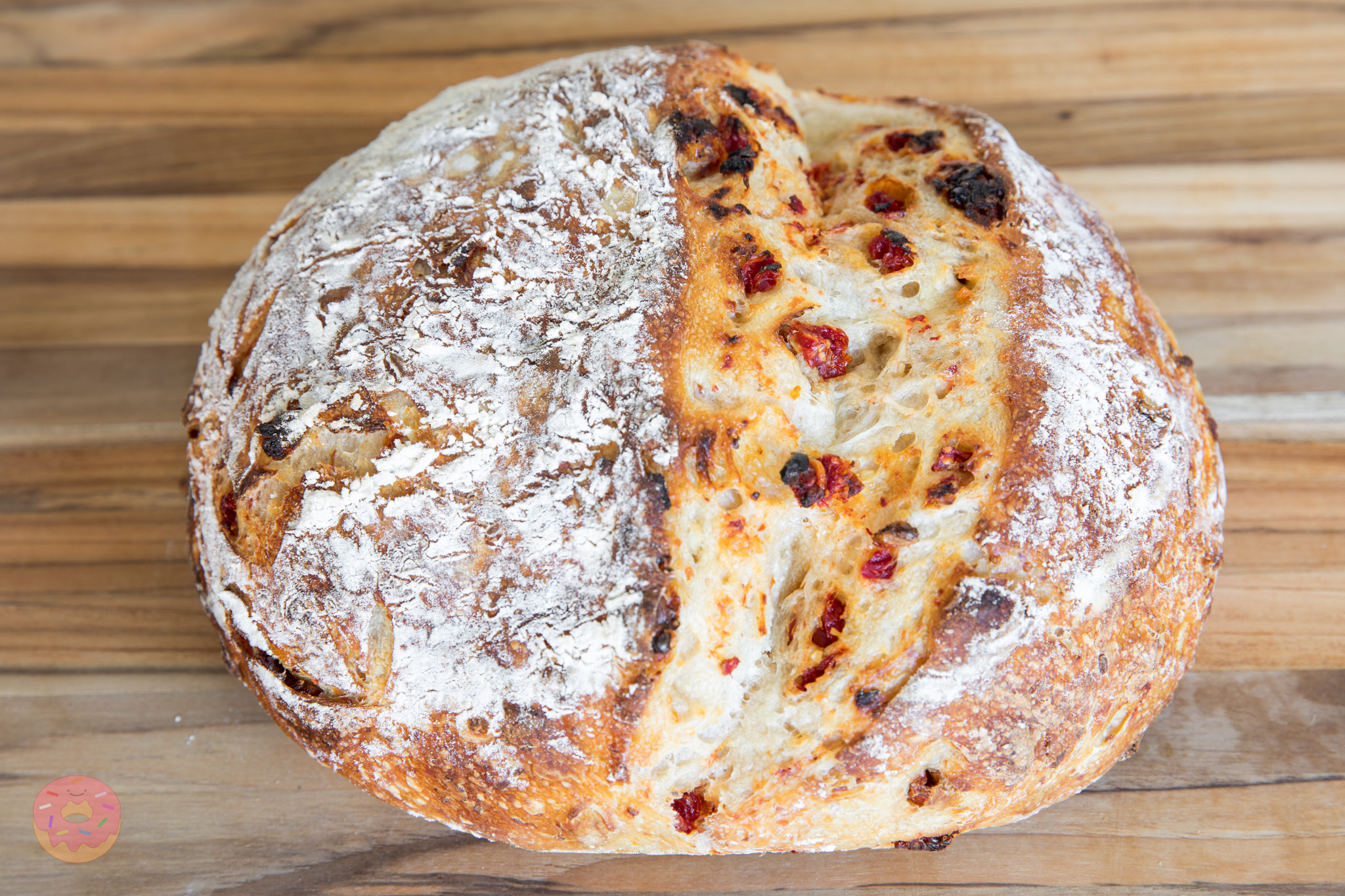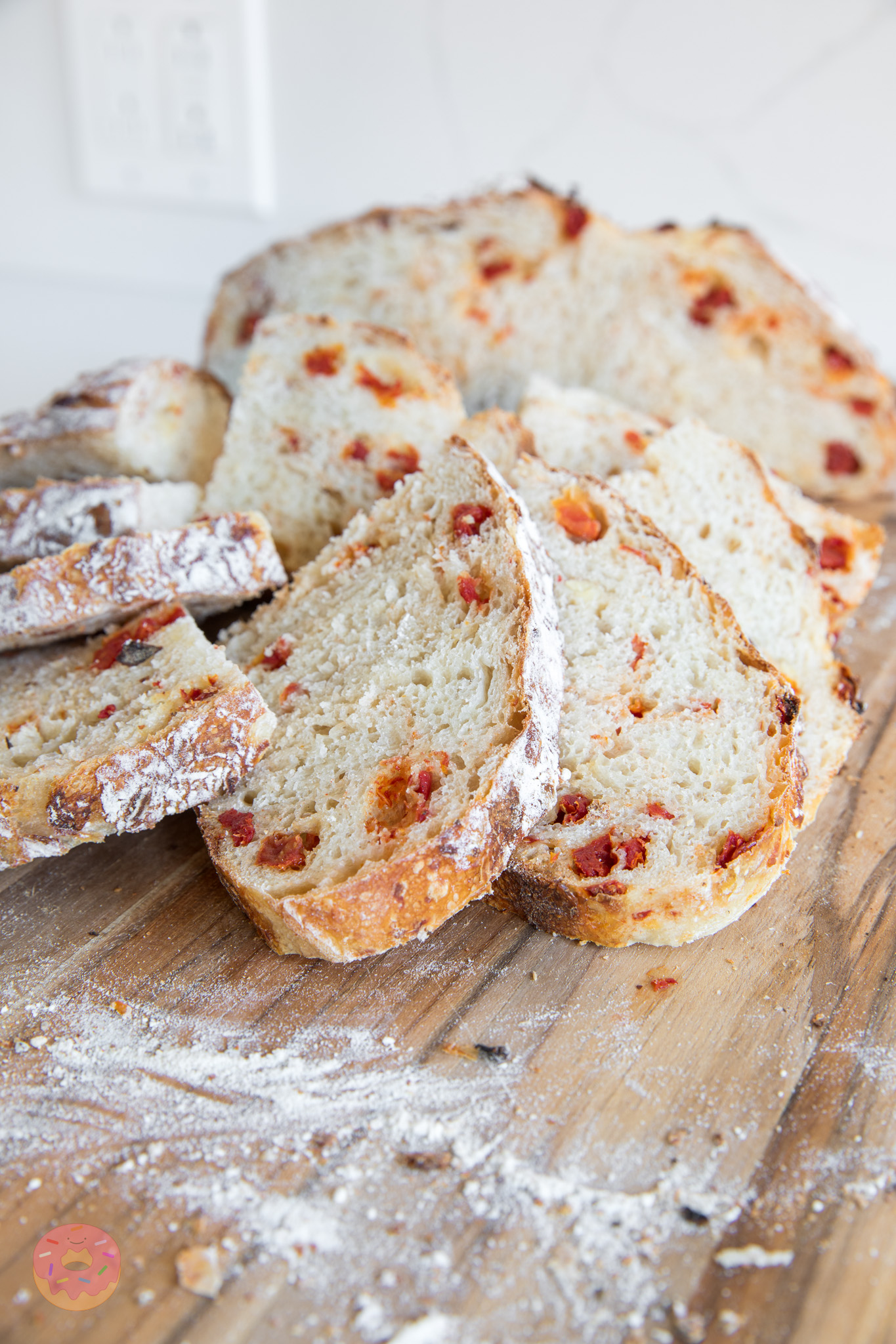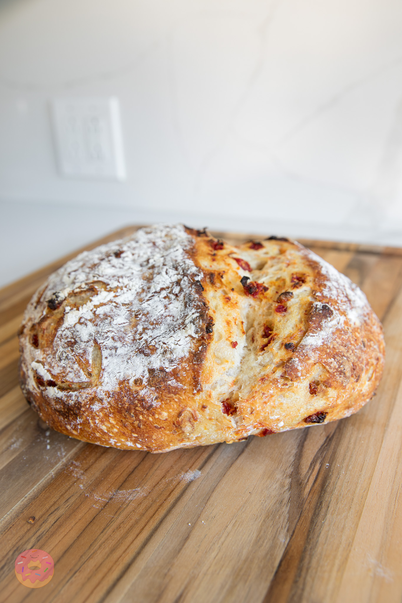 Sweet, tangy sundried tomatoes, punchy garlic, and a hint of parmesan beautifully enhance the crusty, chewy dough. This loaf is so good it will make your house smell like a pizza parlor; it literally smells and tastes like a fresh, warm pizza right out of your own oven. The tomatoes are definitely the star here and baking them into the bread brings out their lovely sweetness and plump texture. A complementary dash of fresh minced garlic and sprinkling of parmesan cheese invokes the feeling of a delicious marinara sauce.Â